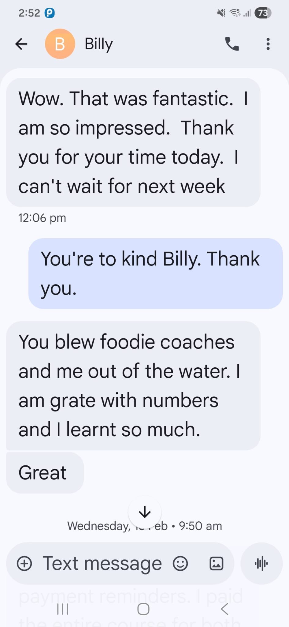 Client message after the session: